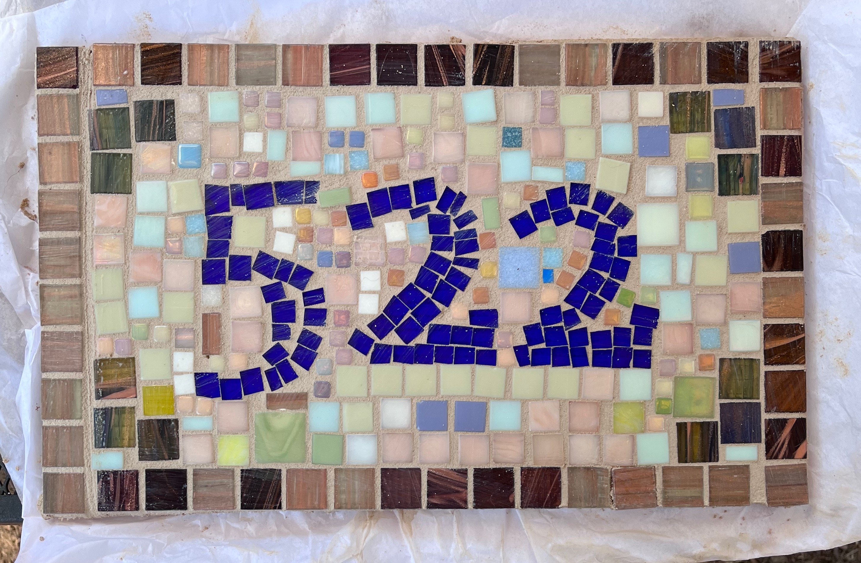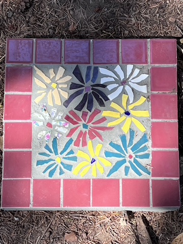 I have removed most of the art I collected for the yard, including my mosaic stepping stones. Only the house number and one stone are left out.